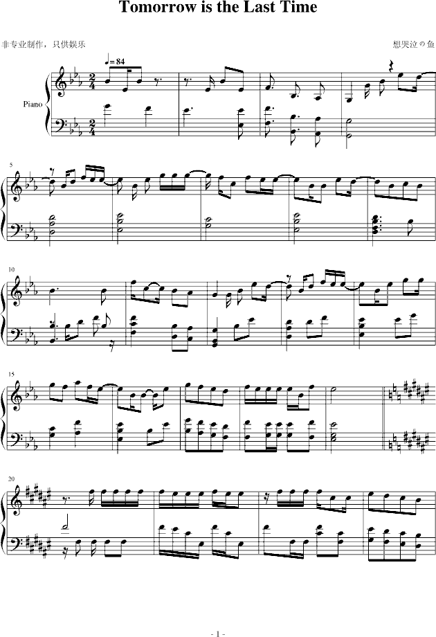 Piano Sheet Music 柯南ed Tomorrow Is The Last Time 瞎编版 Www Gangqinpu Com